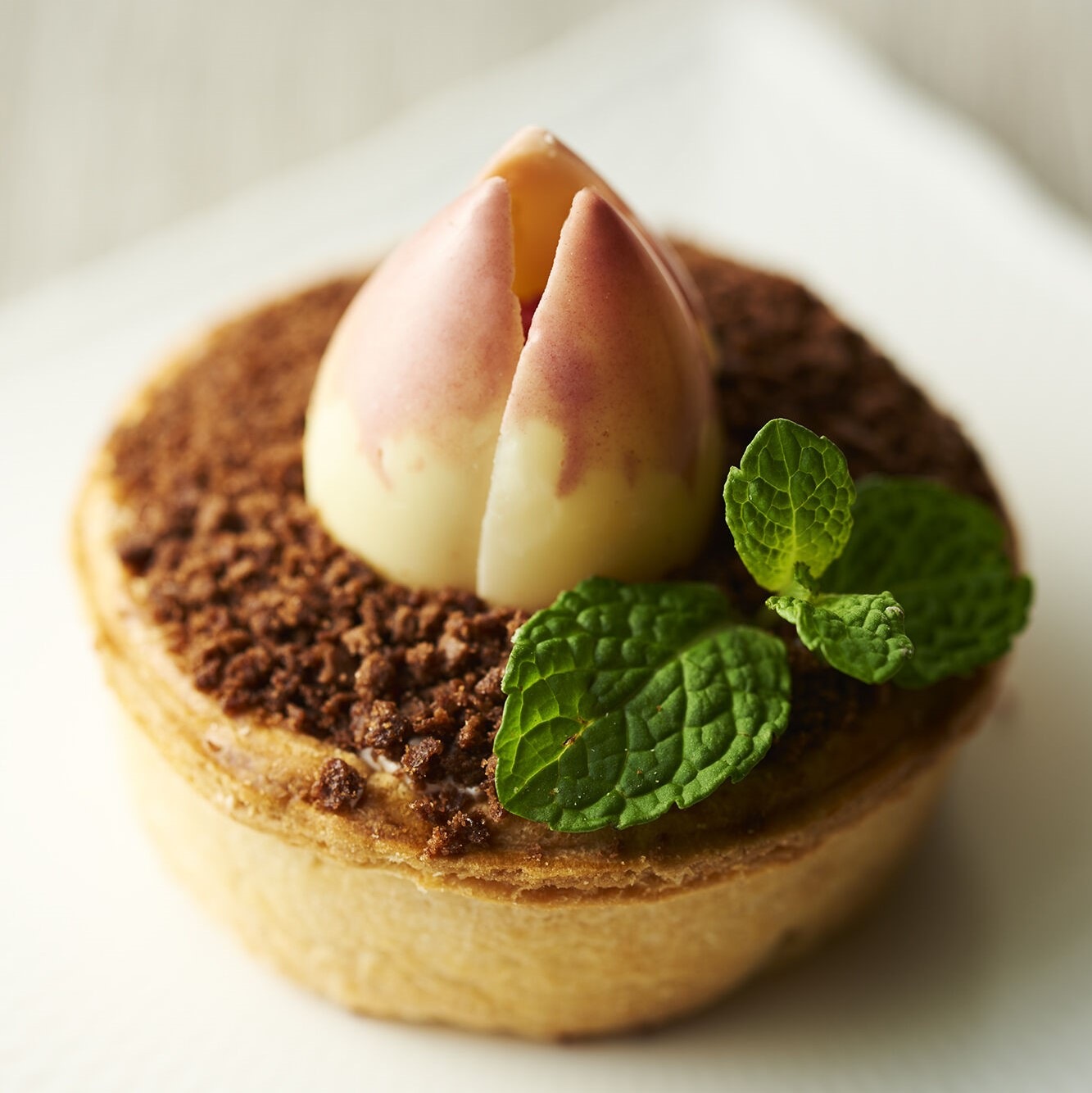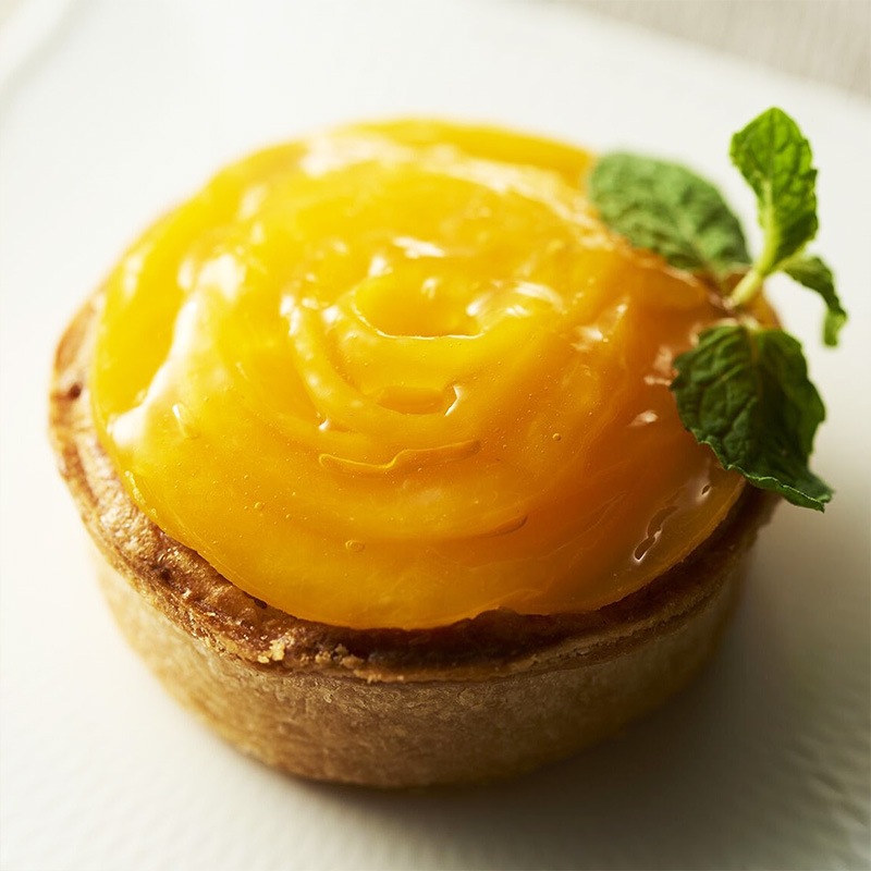 ジューシーな黄桃の花びらが繊細にしきつめられ、