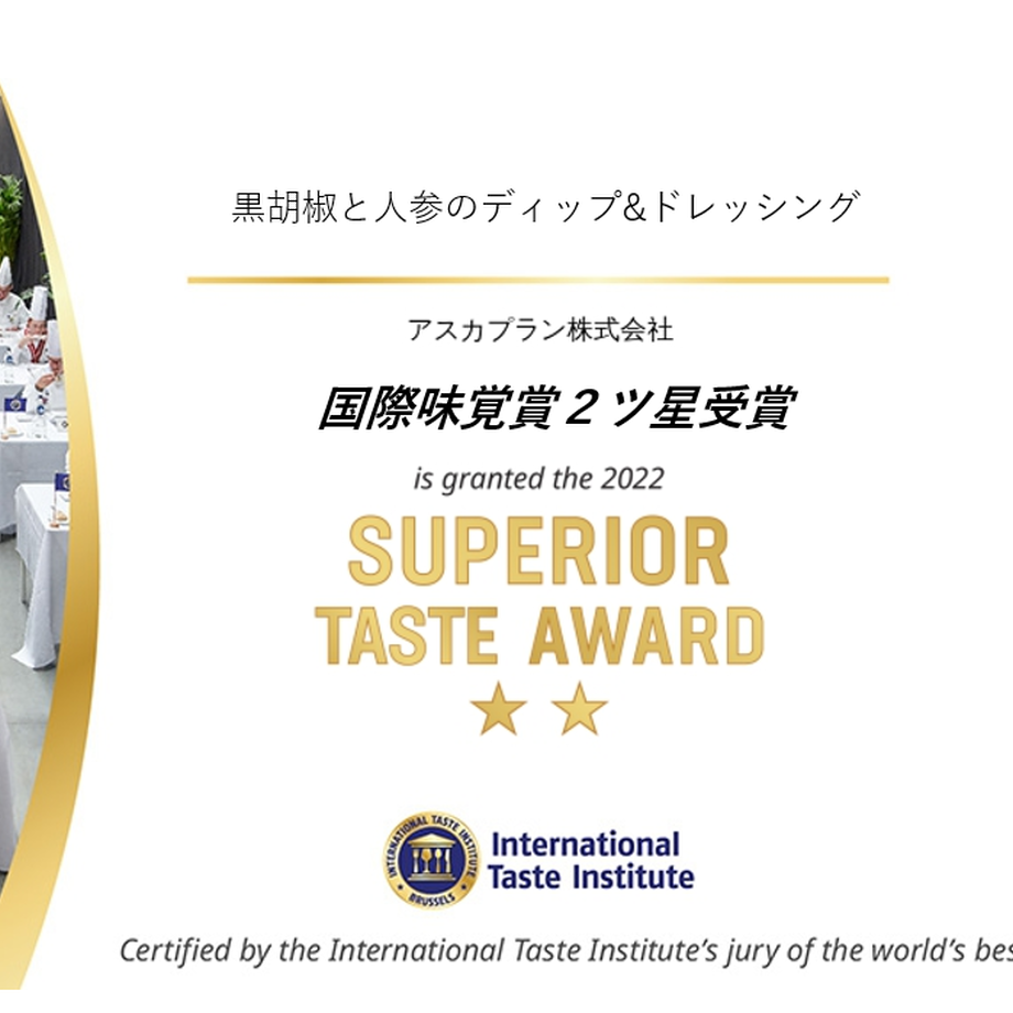 2022年には、International Taste Institute(国際味覚賞)にて2ツ星受賞!