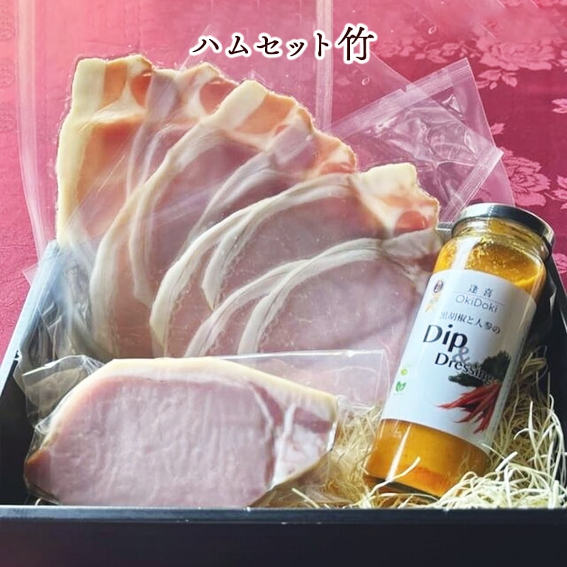 | 内容量 | [竹] ロースハム(ブロック)300g ×1 、ロースハム(スライス(4〜5枚)) 50g×3パック 、自家製人参ディップソース 150g ×1 [松] ロースハム(ブロック)300g ×2、 ロースハム(スライス(4〜5枚)) 50g×3パック 、自家製人参ディップソース 150g ×1 |