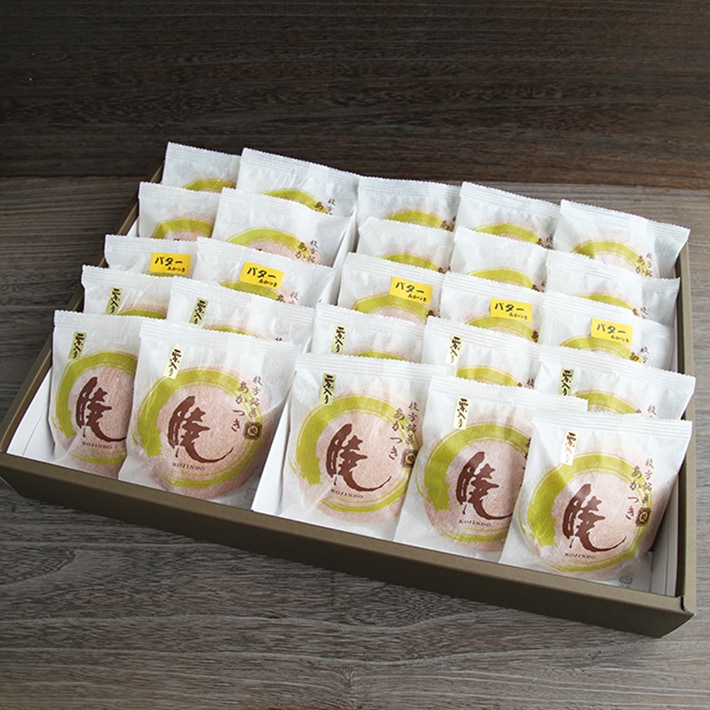 | 内容量 | ・暁(粒あん):10個 ・栗入り暁:10個 ・バター入り暁:5個 |
