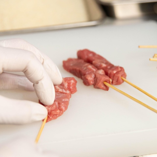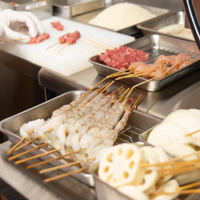 ・串かつは1本1本丁寧に手打ちし、パン粉をつけています。