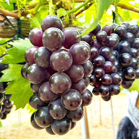 色艶の良い紫黒色の果粒は、とてもジューシー!!